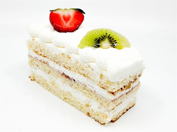 Laagjes cake gevuld met een dun laagje frambozenbessen confiture en een dubbele vulling van luchtige slagroomDit artikel bevat geen gelatine